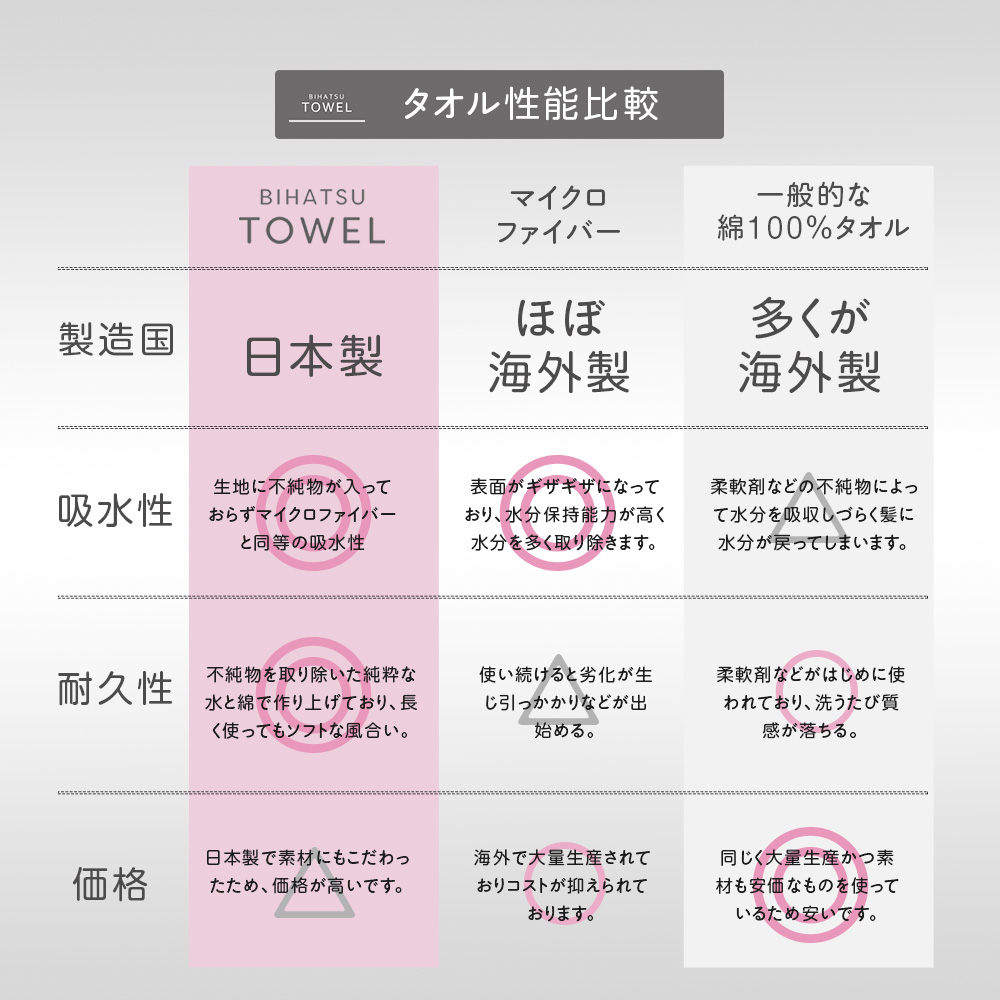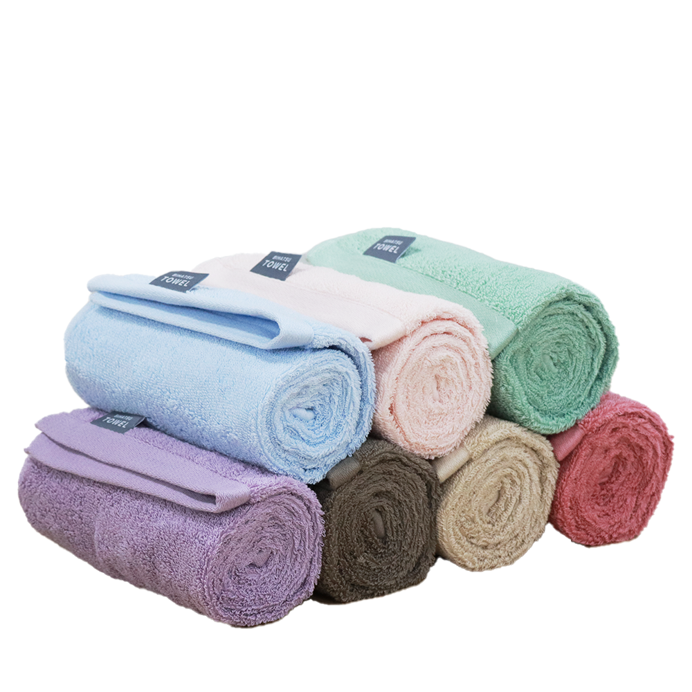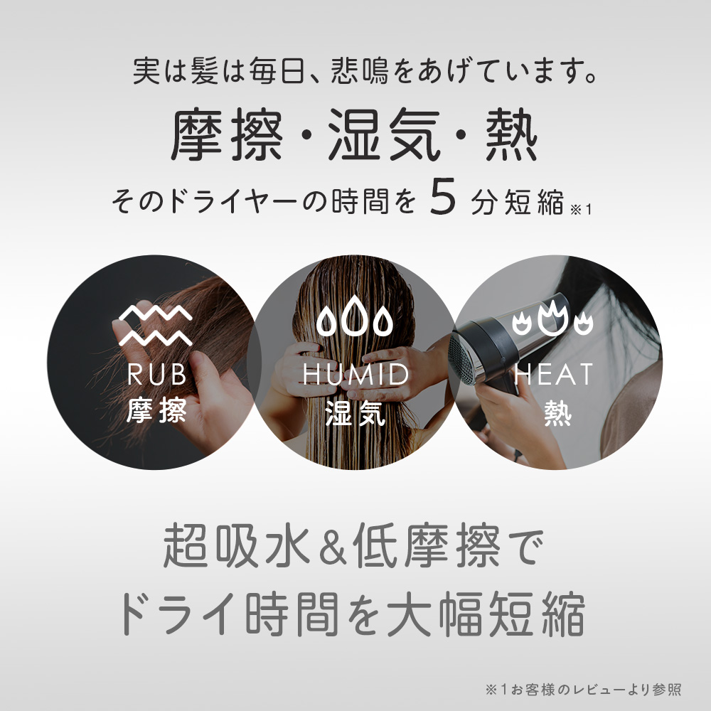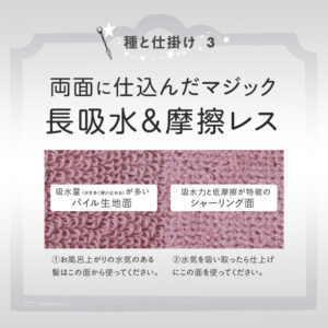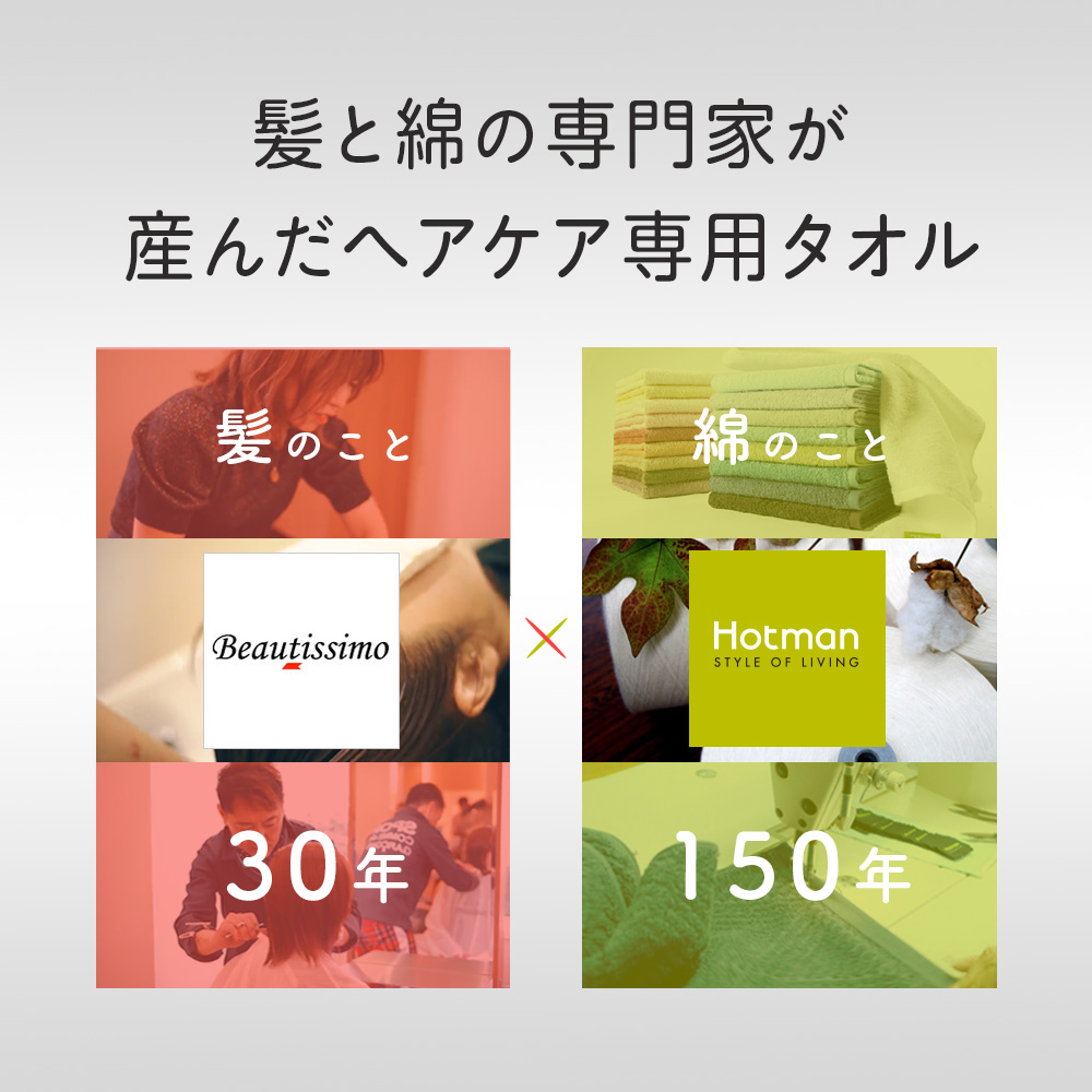 他のタオルにない最高ランクの超長繊維綿。ホットマン社オリジナルの糸を使用した吸水性抜群のヘアケアタオルです。